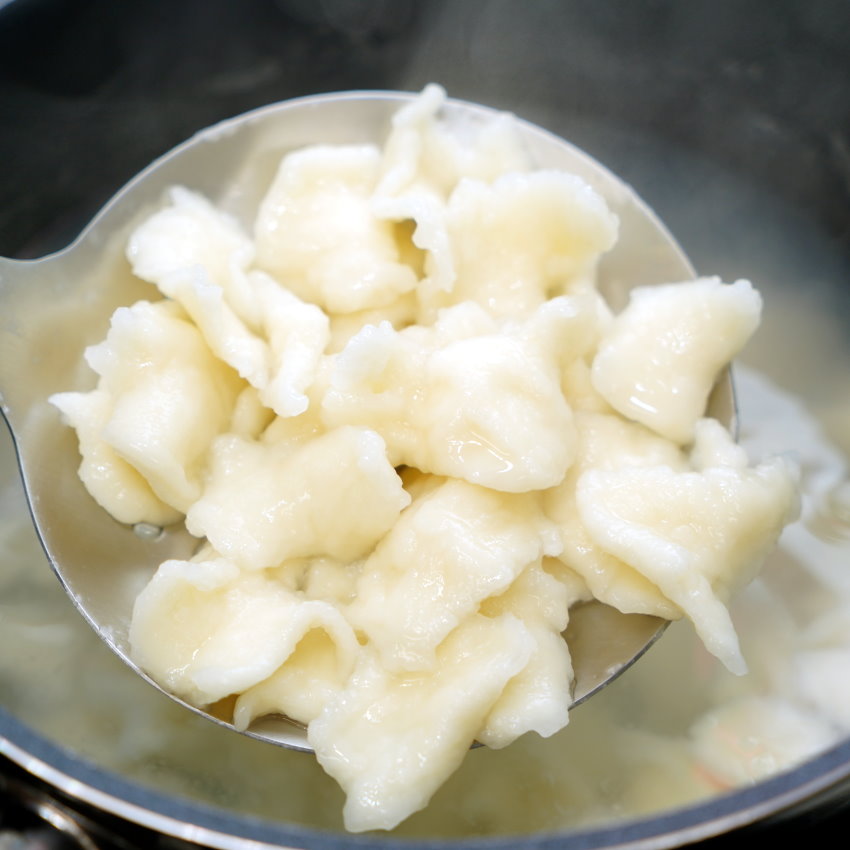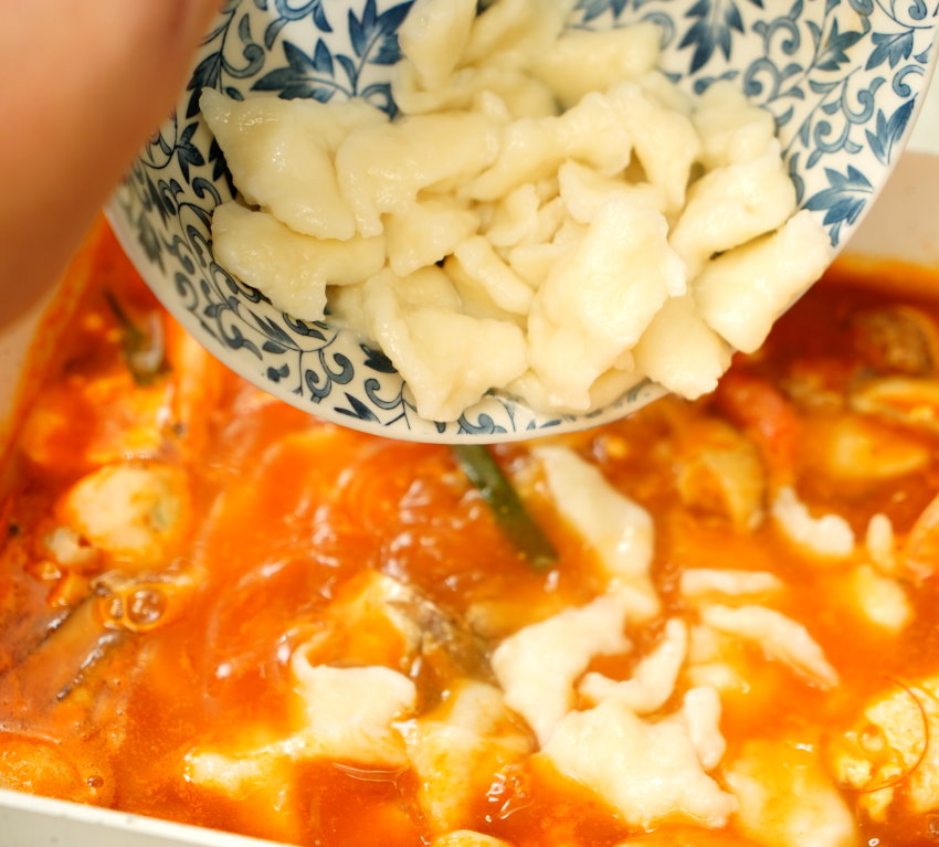 ▼最後再將麵疙瘩倒下去一起煨煮即可!