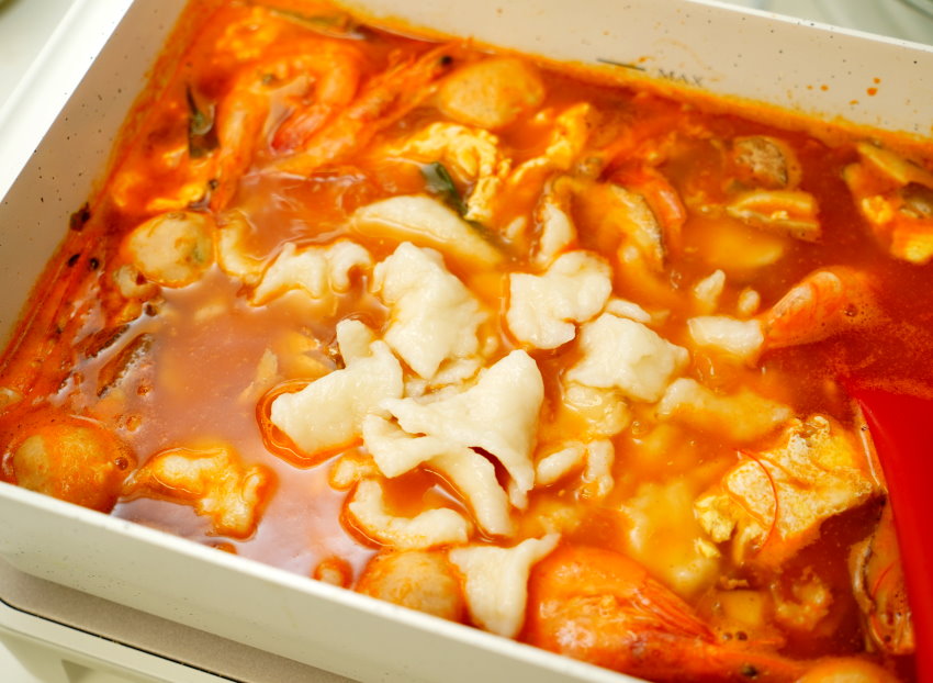 ▼一大鍋海鮮麵疙瘩就快完成啦!只要一鍋就能輕鬆完成,真的很方便啊~~