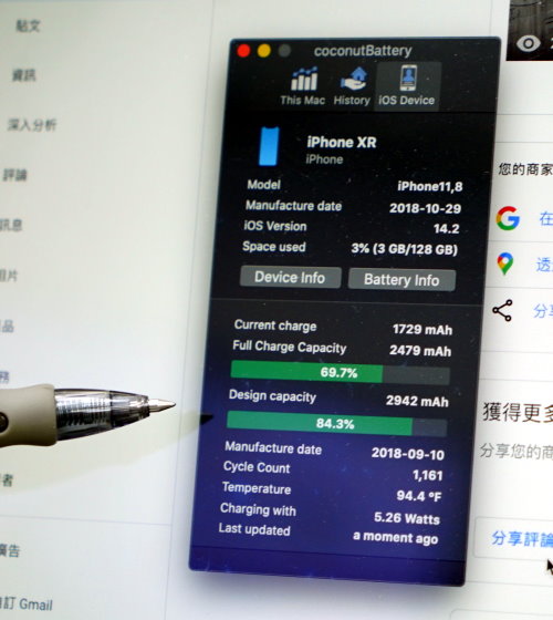 ▼除了檢測手機電池狀況之外,店家也會看一下手機的使用狀態,畢竟每個人使用習慣不同,也許會因為使用某些APP而特別耗電,這些細節也通通都會考量進去,再提供給我們最好的建議!其中店家也告訴我們如何保養手機電池,像是充電不要等到完全沒電再充、不要過度充電不然電池很容易會膨脹、盡量避免邊充邊用,不過當然也是要看每個人的工作及使用狀況如何,基本上還是可以依照個人使用習慣,但建議定期來檢測、保養比較實在!