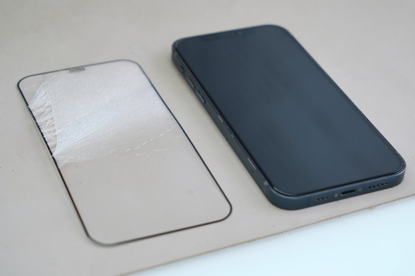 ▼換了新的螢幕保護貼後真的很滑順,感覺手機都獲得新生啦~~一旁放的是破裂的保護貼,感謝你用生命保護了手機(笑)!