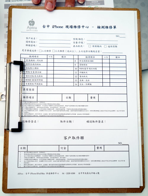 ▼如果需要留件維修的話,店家也會開一張檢測維修單,這也是為了維護雙方的權益所設計,上方會清楚列出檢測項目的問題、維修項目與費用,透明又實在,如果費用需要更動的話也會提前告知顧客,獲得同意後才會進行維修,對於顧客來說也比較不會莫名加價的感覺!