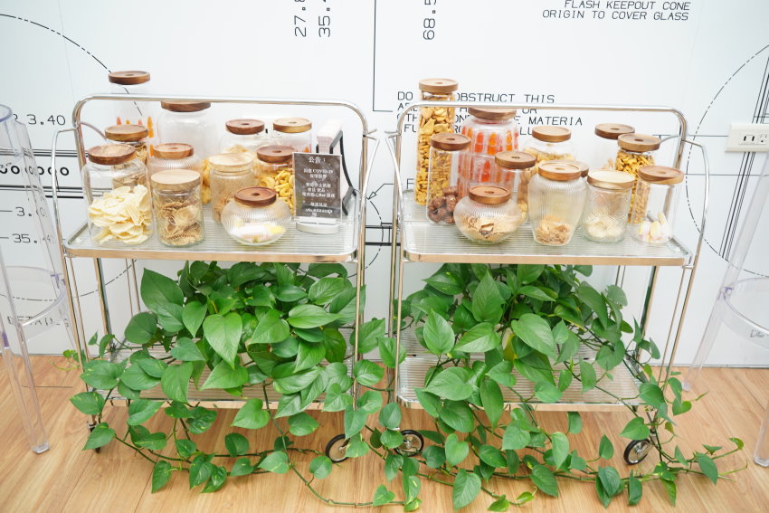 ▼這裡還有貼心準備多樣點心,還特別用推車、玻璃罐裝,有種來到某間咖啡店的錯覺~~不過疫情期間考量室內不方便脫口罩,所以點心、飲料吧暫停供應,以後也會視狀況恢復唷!