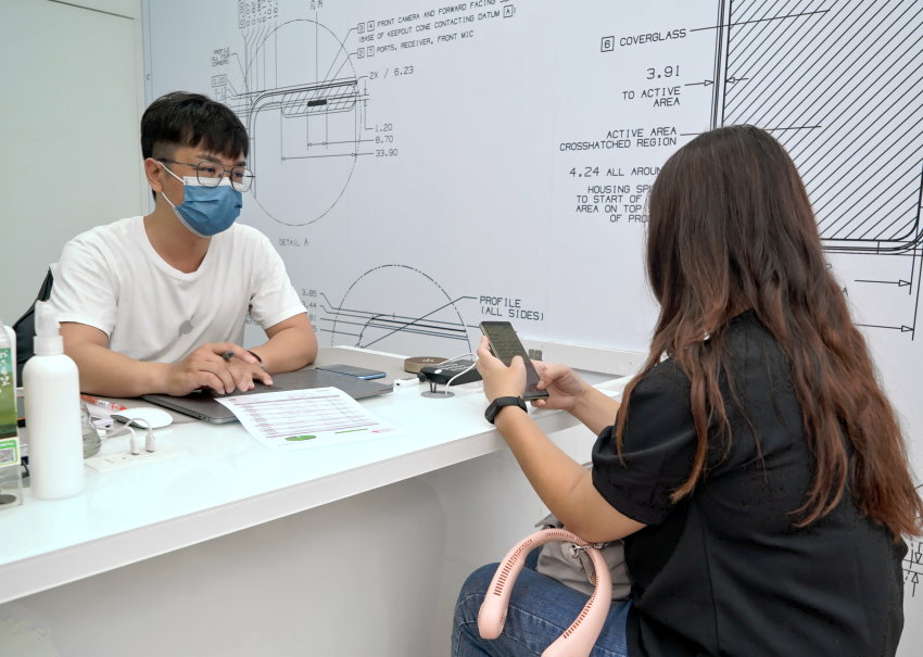 ▼這裡主要服務項目為APPLE蘋果全系列手機&筆電維修,保護貼、包膜、周邊配件等,另外也有新機、二手機販售,蘋果迷有任何問題來這準沒錯!室內整體空間也非常接近蘋果給人的質感,清新、簡約、明亮,開放式的空間看起來簡潔又寬敞!