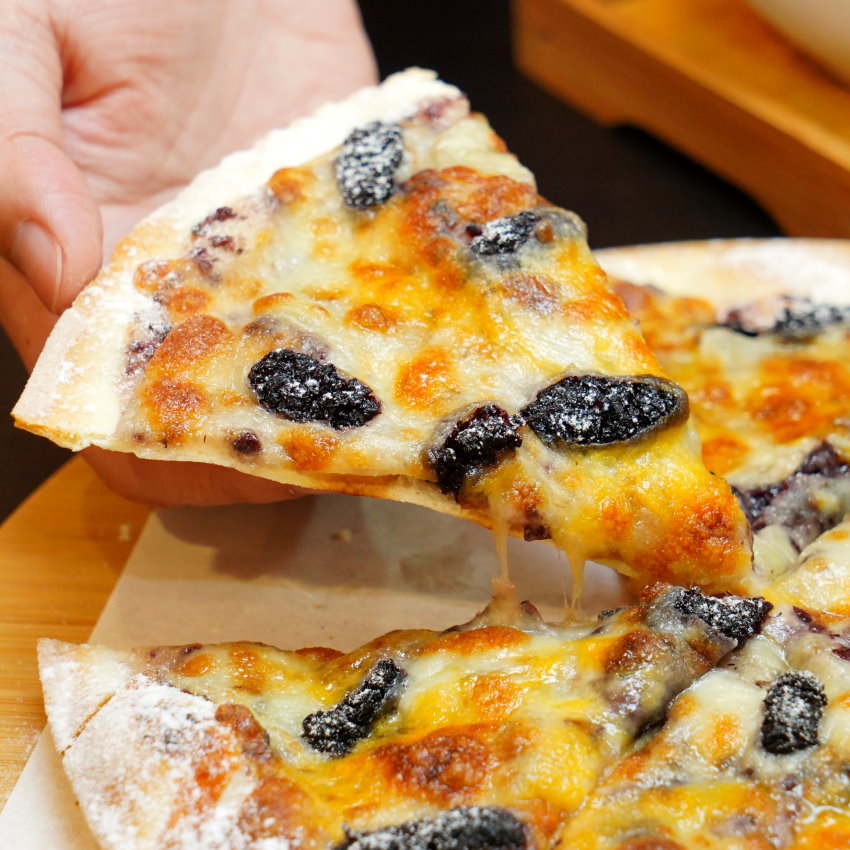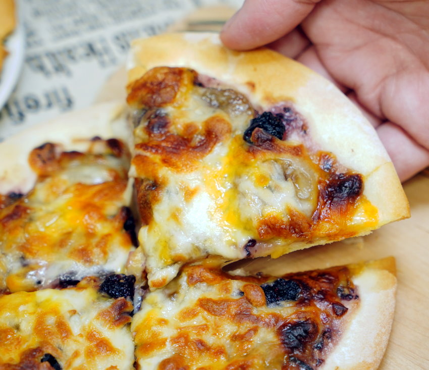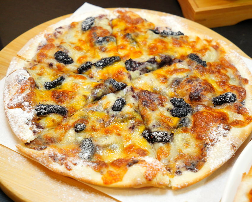 ▼採用桃園在地的桑葚熬成果醬,再搭配起司醬、香蕉、乳酪絲下去製成,光看就讓人口水直流!