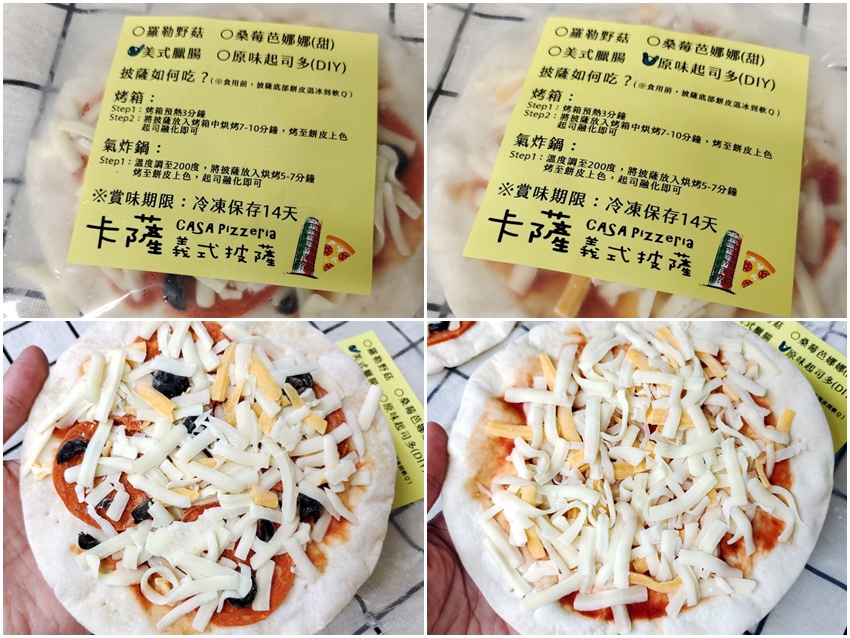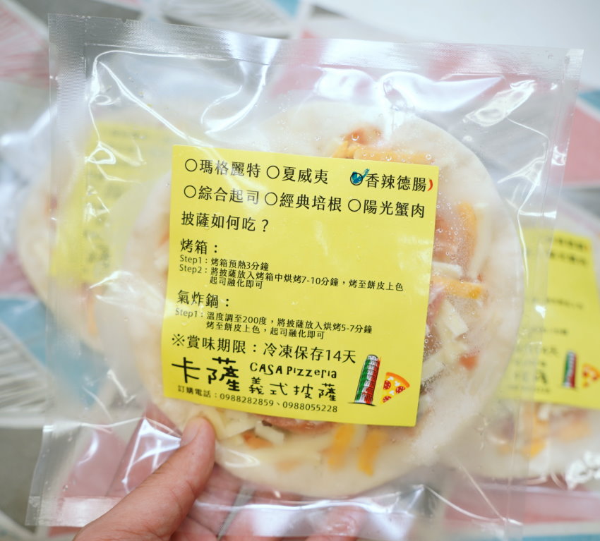 ▼「卡薩義式披薩」也可以訂購冷凍披薩回家享用,喜愛他們家披薩、沒辦法到現場用餐或外縣市的朋友也很適合囤一些冷凍披薩在冰箱慢慢吃,且自己烤出來跟店內吃到的幾乎一模一樣,不油不膩、薄脆好吃!有時候懶得外出覓食或是家人、小朋友突然想吃披薩,隨時都可以拿出來烤,特別的是他們家除了推出多種口味冷凍披薩之外,還有DIY披薩,餅皮、番茄糊、起司都幫你弄好了,只要自己加上喜愛的配料就可以拿去烤啦~~好吃又能滿足DIY的樂趣,小朋友在家也不無聊了!