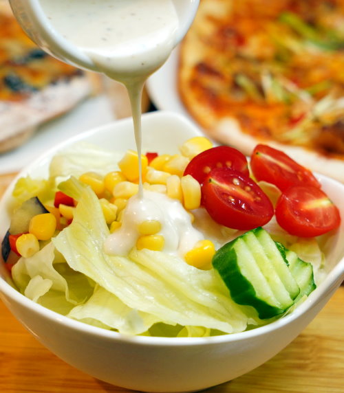 ▼大家可以將沙拉醬直接淋上去,或是沾食享用!