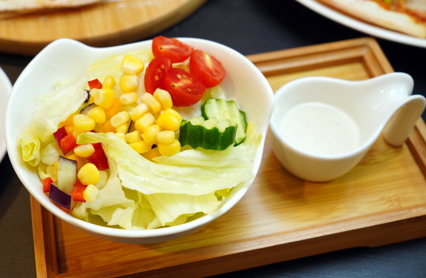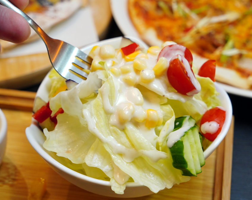 ▼沙拉,一旁附的是較為爽口的凱薩醬,吃起來開胃又解膩!