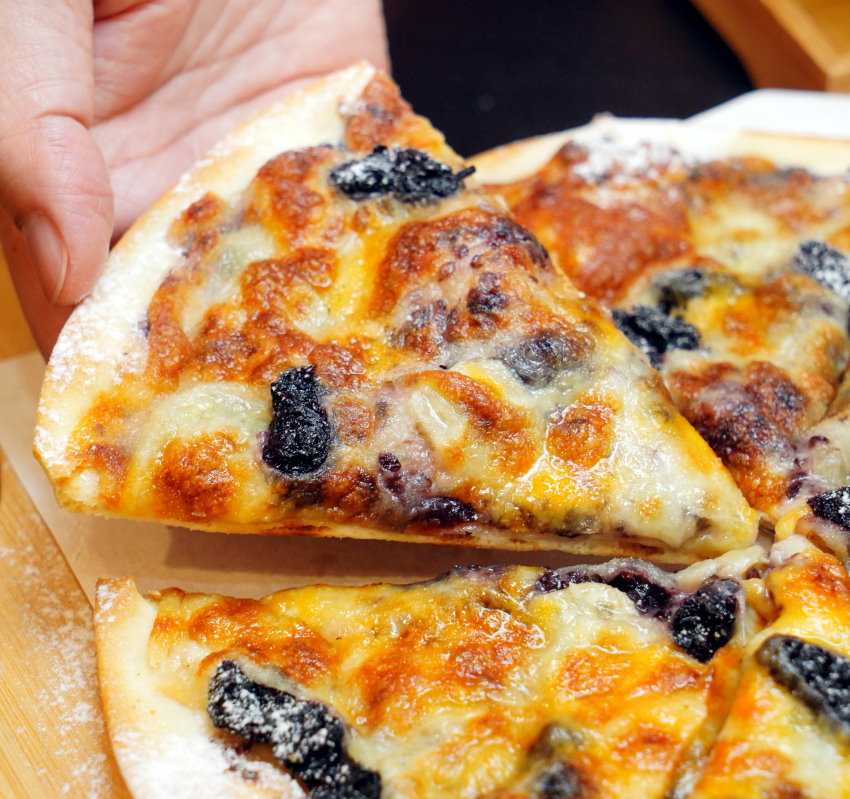 ▼裡頭以手工桑葚果醬鋪底,搭配香蕉、桑葚果粒與乳酪絲,吃起來既有桑葚的酸甜果香,加上香蕉熟果香氣、迷人的濃郁起司,不僅不會過於甜膩,鹹甜交錯的滋味耐吃又美味啊!