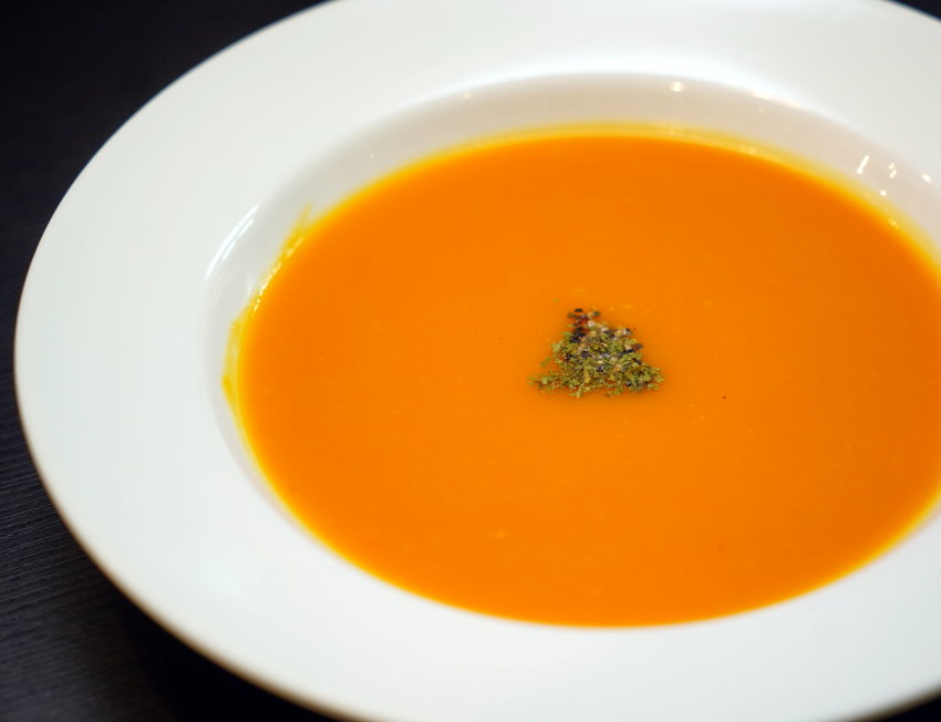 ▼B套餐包含了南瓜濃湯、沙拉、紅茶,南瓜濃湯份量還不少,喝完也挺有飽足感!