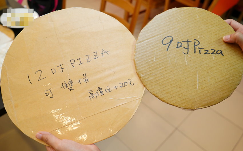▼店家還會附上披薩的尺寸模型,點餐時就比較容易可以掌握份量!他們家除了9吋跟12吋披薩的選擇之外,12吋還可以做雙併口味,以價高者+20元即可享用,讓大家可以免去選擇困難,一次就可以享用到兩種不同風味的披薩,真的很大心啊!