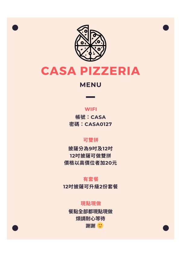 FB粉絲團:https://www.facebook.com/CasaPizzeriaTW/