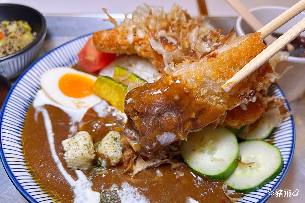 ▲日式炸豬排咖哩一向深受台灣人喜愛,撒上柴魚片的厚切豬排份量十足!每一塊厚度大約有2公分,外表喀滋喀滋的麵衣讓整體口感很加分。豬排口感扎實,外表酥脆,裡面保有肉汁,沾著咖哩醬一起吃,味道層次豐富,一份吃完超滿足!