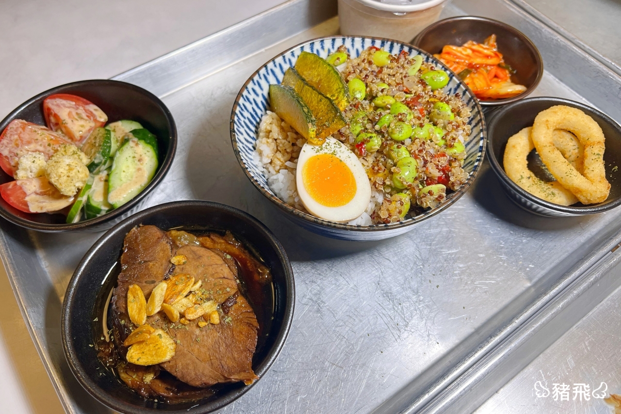 ▲不吃炸物的話可以選擇滷牛腱套餐。飯類是搭配營養價值很高的藜麥毛豆仁,還有炸南瓜、溏心蛋,小菜有沙拉、泡菜、炸洋蔥圈,滷牛腱雖然沒有炸物來的視覺強大,但友人說口味也不錯。
