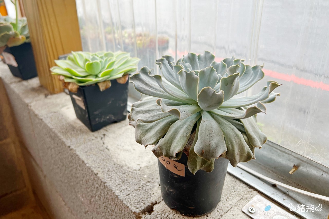 店面外觀是溫暖系的木造結構為主,以木製傢俱、窗櫺、鵝卵石步道呈現,營造出濃厚的日式風格,這裡離妮娜巧克力夢想城堡、桃米紙教堂很近。很適合安排一日遊行程。大概是因為這裡的陽光跟雨水充足,多肉植物養得好壯碩,喜歡多肉的朋友可以買回家。