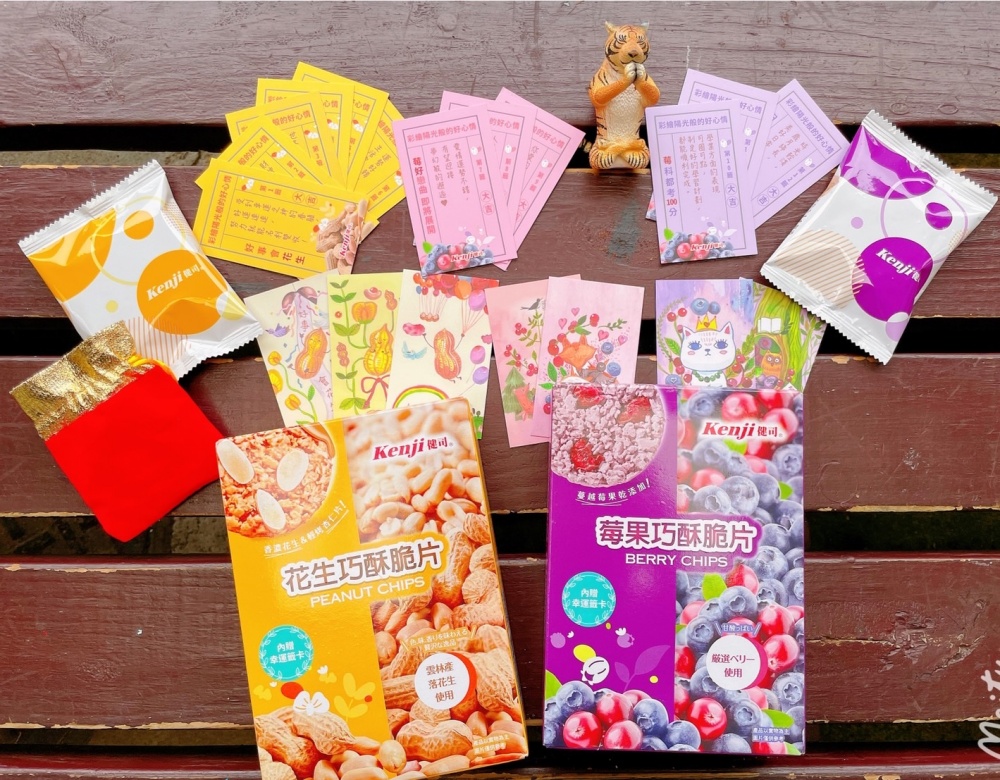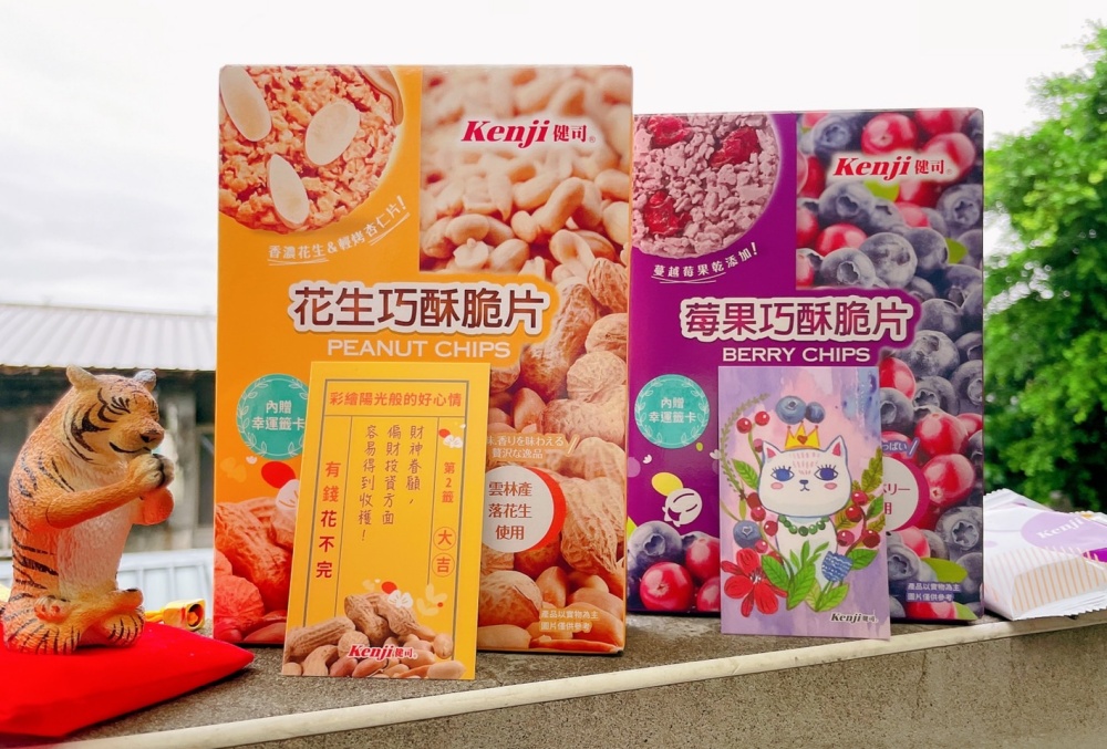 Kenji健司巧酥脆片精心選用各種天然食材,酸酸甜甜的蔓越莓果乾、香酥涮嘴的雲林落花生,為傳統的脆片餅乾注入新風味!不但有網美的外表,更有超強的口味實力。即日起至08月18日於全聯社購買「健司莓果、花生巧酥脆片」任選兩盒只要89元,還可以獲得隨盒附贈的幸運籤卡,給你免費占卜、帶來好運!