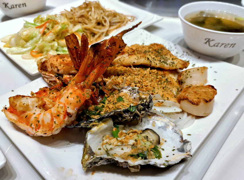 ▼雙人B套餐則是包含板腱牛排、去骨富貴雞排、時令鮮魚x2、鐵板鮮蝦x2、干貝x2、杏鮑菇、清炒豆芽、應時鮮蔬、芝麻白飯、每日湯品等,也是不少家庭客、上班族的首選!其中板腱牛排肉質軟嫩Q彈、去骨富貴雞排為凱林的招牌菜,吃起來外酥脆內鮮嫩,搭配海鮮拼盤還能吃到多樣化的菜色,吃起來層次多元又豐富!
