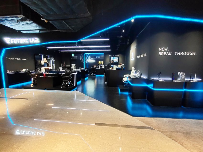 ▼「未來實驗室」是桃園唯一最新旗艦店,不僅是全台最大、足足有35坪,主題影音設備還有長達10米,視覺上也充滿科技感,還能搶先體驗最新科技產品!