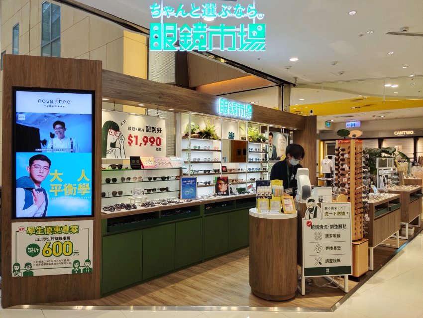 ▼接著來到二樓逛逛,日本第一快速配鏡品牌「MEGANE ICHIBA 眼鏡市場」也進駐大江,不僅在世界三大眼鏡產地之一「福井縣鯖江市」設立自有工廠,並與知名大廠合作,致力於高品質、高機能鏡片,從生產、販售、維修都以無微不至的服務為初衷~鏡框+鏡片配到好只要1990元起,現場也有不少優惠活動!