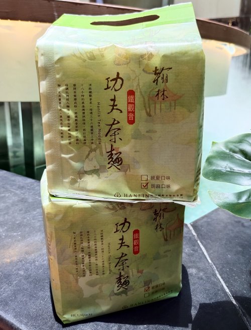 ▼除了茶飲厲害之外,最近還有推出乾拌麵新品「鐵觀音功夫茶麵」,採用頂級鐵觀音茶經過36道揉茶工序,加上18小時高溫漸層烘焙,再以低溫研磨,將茶葉磨成粉並依特調比例揉入麵糰中,目前一共有胡麻、椒麻兩種口味,搭配醬料吃起來更具層次,現在在翰林茶館、翰林茶棧門市都能買得到!