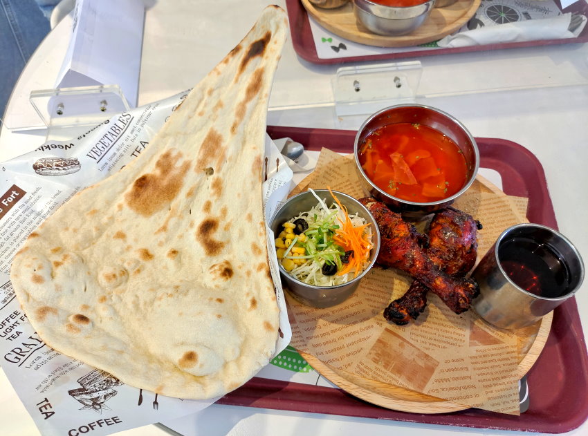 ▼坦都炭烤雞腿也是店內招牌之一,搭配的是原味烤餅,吃起來外酥內軟,既有麵香又有Q韌的嚼勁,比較適合沾附咖哩享用!