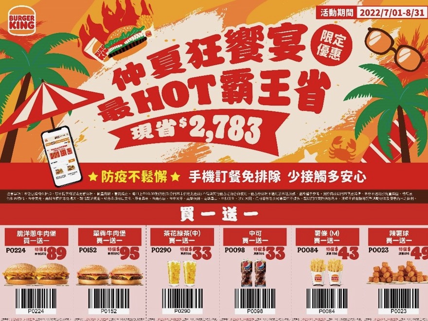 嗨翻暑期好心情,最 HOT 霸王省特別推出多款「花生」系列明星商品優惠組合,包括花生培根牛肉堡、花生培根脆雞堡、花生安格斯牛肉堡、美式花生雙層脆雞堡、美式花生牛肉堡、早餐系列的花生香豬蛋與花生蔬菜華頌等,揪團開吃好事天天發生。個人超省餐只要百元,就能吃到「堡、薯、點心與飲品」四件組,比買便當還划算!