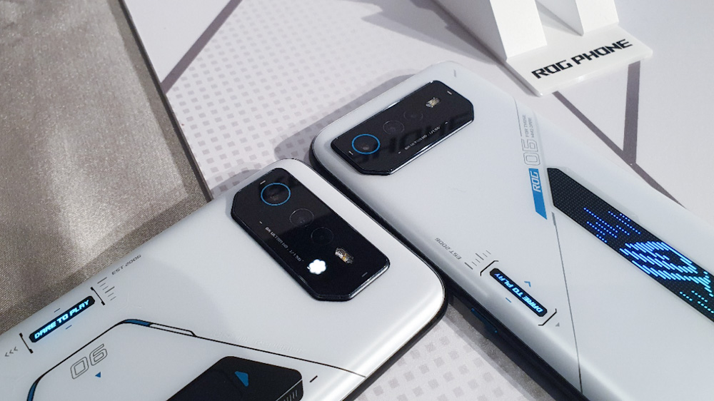 ROG Phone 6 與 ROG Phone 6 Pro,擁有相同的 6.78 吋 166Hz AMOLED 面板,承襲前代飽受好評的雙立體聲喇叭,3.5mm 耳機孔也罕見地被保留下來。兩款手機主要差異有兩點:外觀和規格配置。