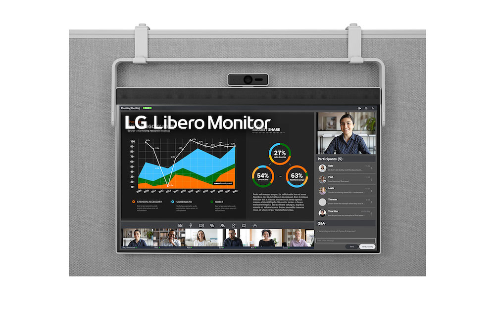 後疫情時代催生的混合式辦公型態,消費者對於工作彈性、設備需求也同步提升。LG Libero 自由機透過獨特的美形設計搭配隨附的 2-Way 支架,讓 Libero 自由機彷如一般辦公空間的吊掛小物,可懸掛在辦公隔板上,不佔用桌面空間,亦可隨心直立於辦公桌上,提供更彈性貼心的工作方案。