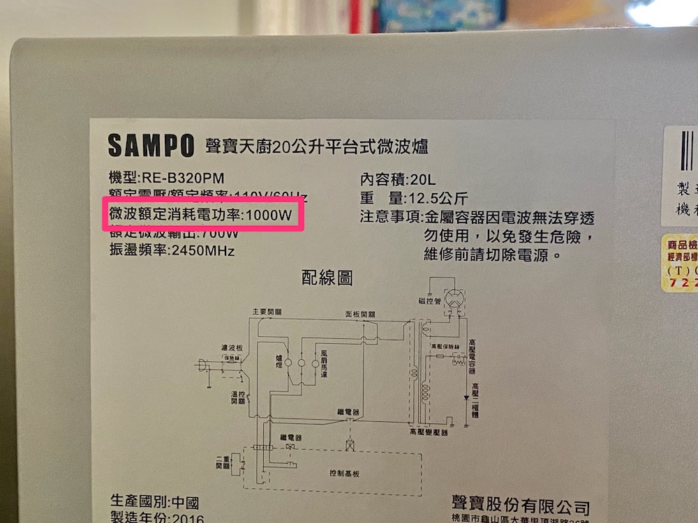 所以如果要計算這個電器一天會消耗多少電能,就是 電功率 (W) x 使用時間