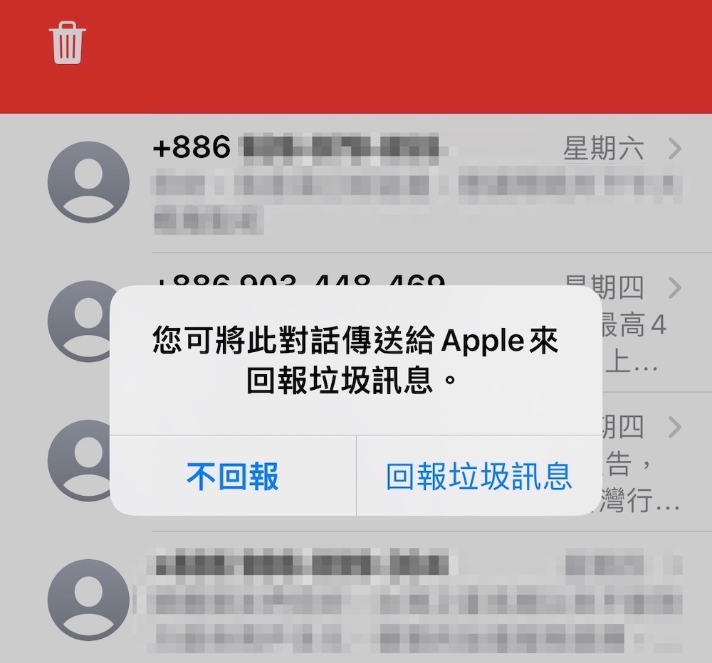 若是要透過電信業者來封鎖簡訊,只能針對「所有簡訊」的收發來做全面的禁止。若是 iPhone 的用戶,除了把 iMessage 關掉外,也能在收到訊息時刪除時,選擇「回報垃圾訊息」來將這個號碼封鎖。