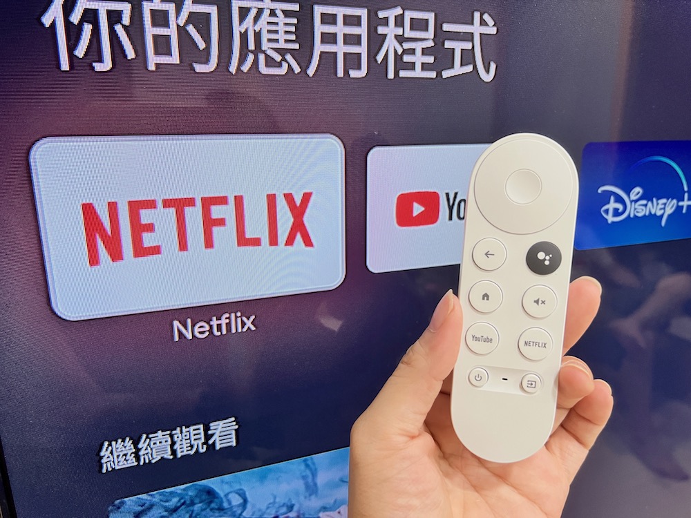 Chromecast(支援 Google TV)這次最 “親民” 的點就屬這遙控器了。遙控器本身需要兩顆 AAA 電池,而這盒裝中會先附上。遙控器的一側有著音量大小控制鍵、正上方就是上下左右的控制區,遙控器本身具備有語音麥克風的功能,因此我們只要按下遙控器上的 Google Assistant 的語音按鍵,就能直接對著麥克風說出想要搜尋的頻道、影集或是跟 Google 助理互動,操作區還相當貼心地放上 YouTube 與 NETFLIX 獨立快捷鍵,來更迅速的進入想要使用的串流平台。