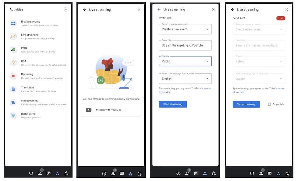 Google Meet 一直致力於提供大型會議、學校活動等服務,現在要將 YouTube 直播服務擴展到 Google Workspace Enterprise Starter、Enterprise Standard、Enterprise Plus、Education Plus、教學升級客戶、 Google Workspace 個人用戶、特定國家/地區的 Google One Premium 計劃成員以及擁有個人 Google 帳戶的用戶使用。