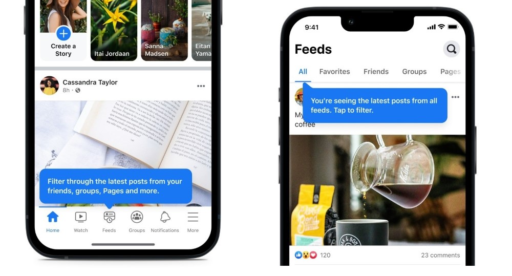 另一方面,主要頁面(即開啟臉書看到的第一個頁面)將更名為「首頁」,臉書表示,首頁主要用途在於「探索新內容、查看朋友的限時動態及打造共同興趣的社群」,因此會使用機器學習排序系統,依照用戶行為推薦不同的內容與創作者。