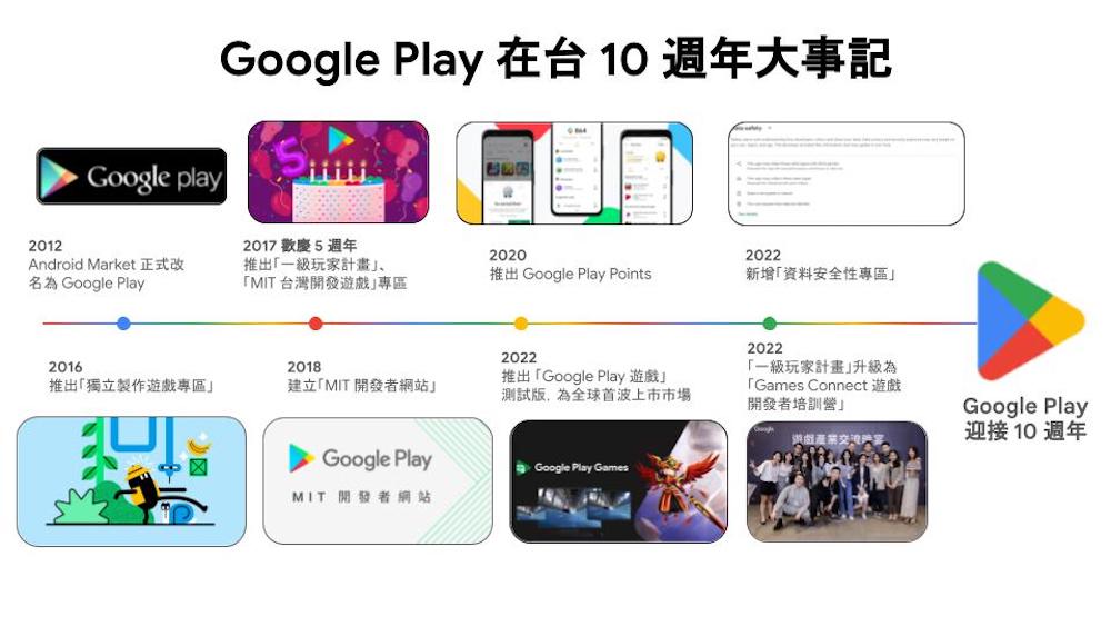 2015 年,Google 開始參加、贊助「台北遊戲開發者論壇」,並且定期舉辦講座、工作坊、免費諮詢、開發者與玩家聚會、定期寄送月訊,協助台灣的開發者了解全球最新的平台政策和市場趨勢。2016 年 7 月推出「獨立製作遊戲專區」,讓使用者有機會探索多款台灣獨立開發遊戲;2017 年特別開設「MIT 台灣開發遊戲」專區,讓大家更容易探索台灣出品的優質作品。