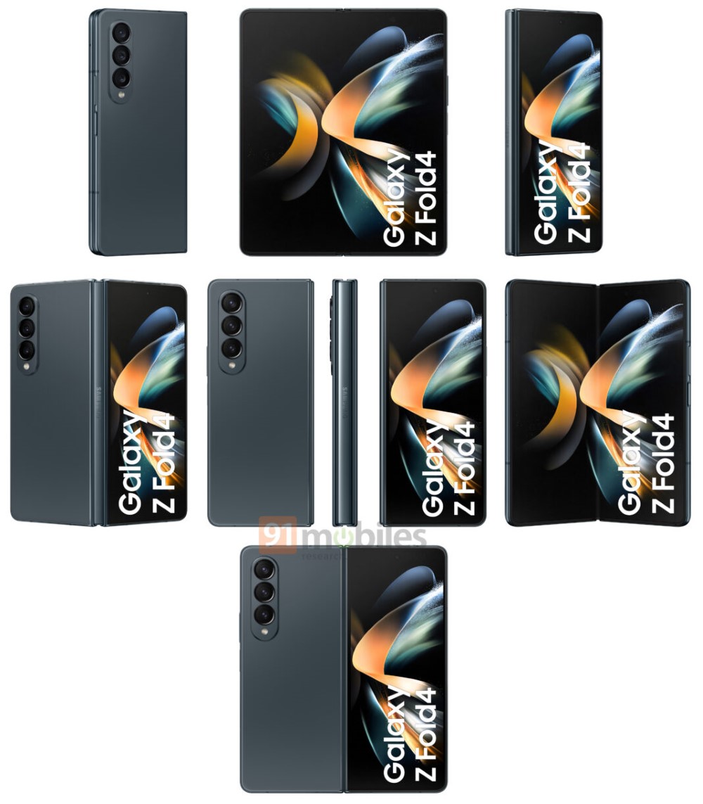 根據洩密人士 Evan Blass 向《91Mbiles》提供的官方宣傳圖,Galaxy Z Fold 4 可能有三款顏色可選(黑色、米白色、灰色);Galaxy Z Flip 4 可能有四款顏色可選(黑色、金色、藍色、紫色)。