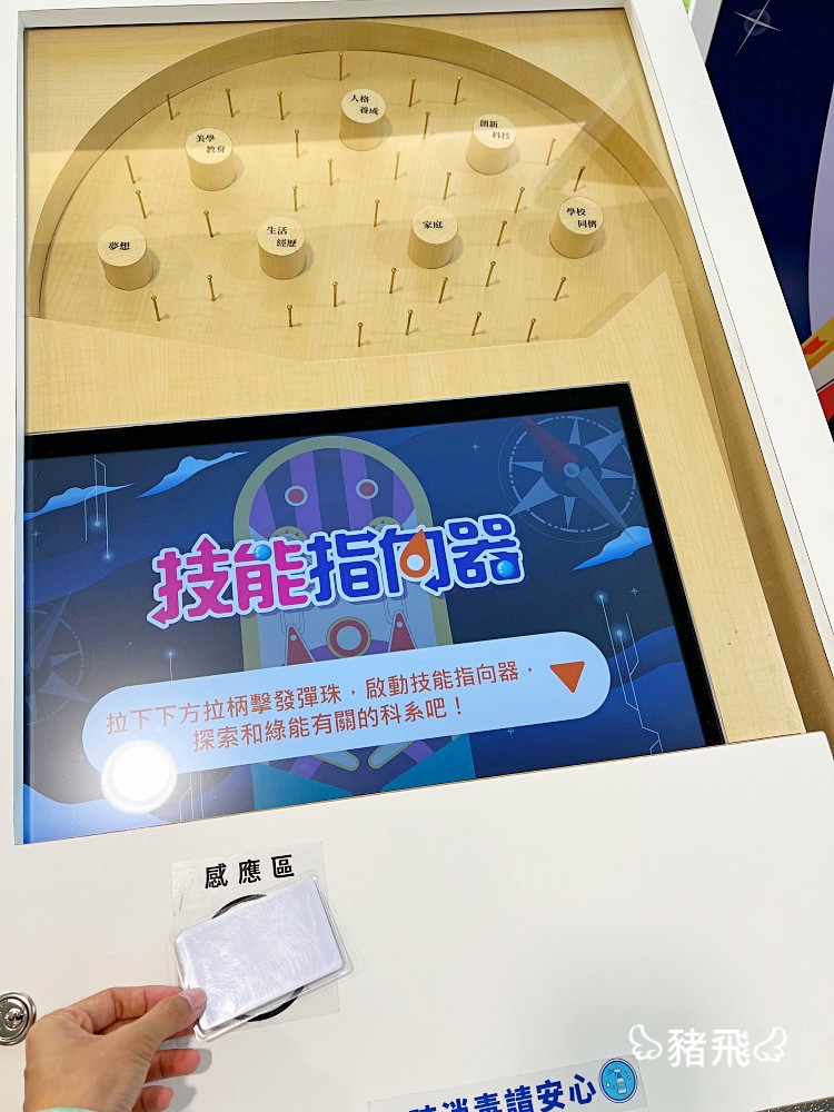 「技能指向器」透過有趣的彈珠台方式,模擬未來可能的科系,了解各個科系學習的內容與未來規劃。