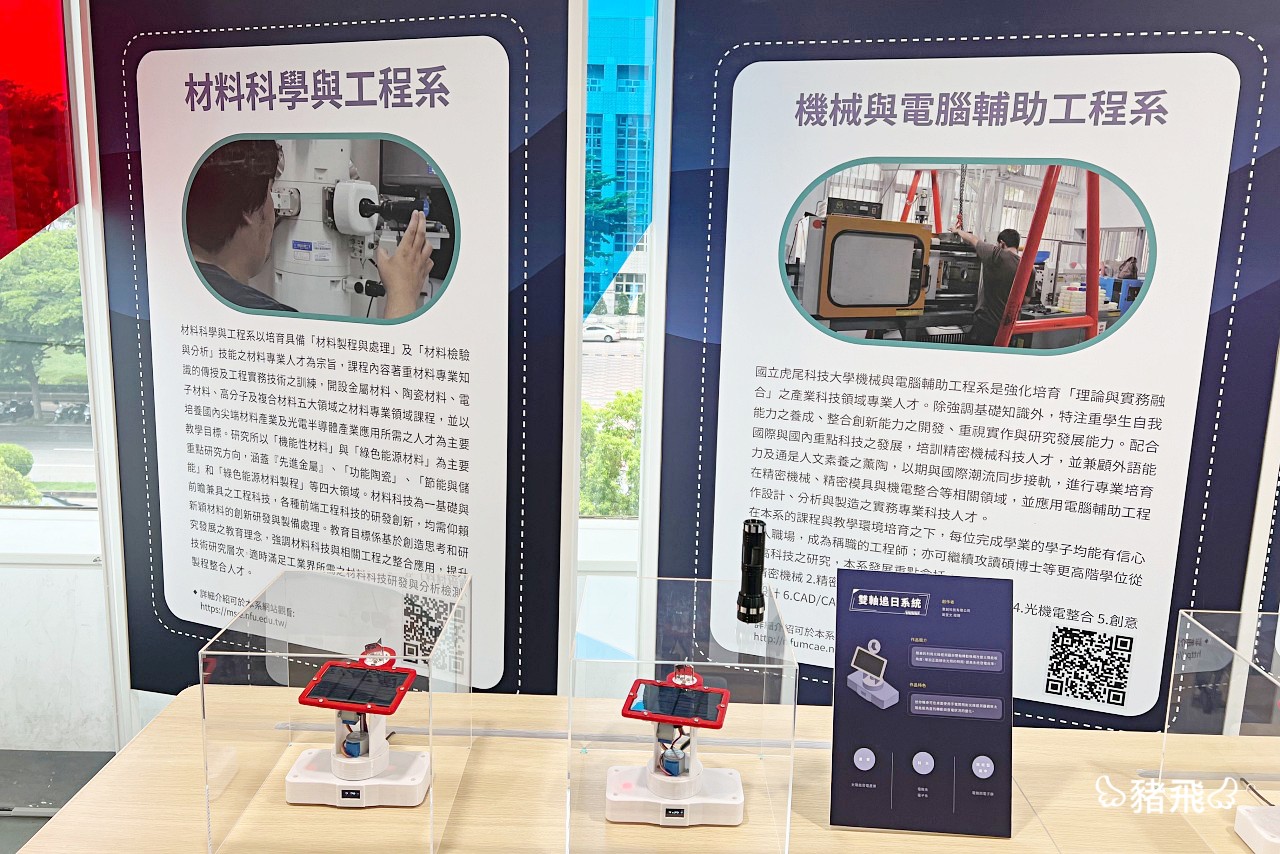 展區裡的作品是由國立虎尾科技大學各科系師生共同研發,預計展出時間每年換一次主題!有較長的時間讓更多人可以一睹每件作品風采,雖然豬飛對於理工相關實在不拿手,但看到這些作品真的是讓我驚豔連連,科技與綠能原來可以這麼生活化又有趣啊。