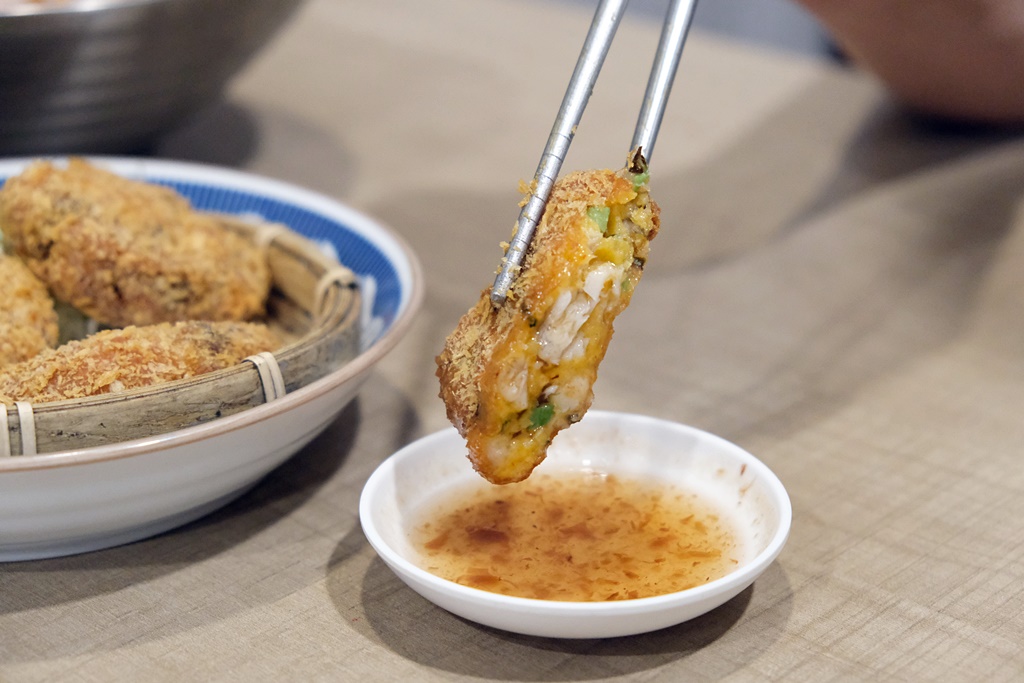 店家手工製作的魚餅,和一般常見的金錢蝦餅口感大不同,可以吃到魚肉的鮮甜軟綿,搭配的沾醬有梅子的酸甜滋味還有微微的椒麻香氣,我們覺得好搭好美味~推薦必點