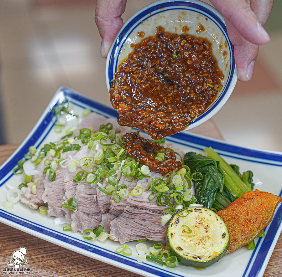 隱藏版新菜 椒麻青蔥蒜泥白肉,大量的蔥花、搭配主廚秘製椒麻醬