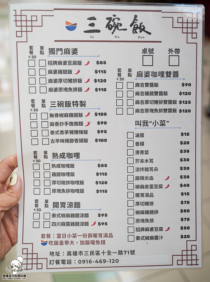 三碗飯 Sa Wa Bon鄰近高醫商圈,附近上班族、護理人員最愛訂購的美食