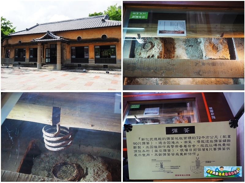 ▲古色古香的新化武德殿,殿內彈簧木地板是全台灣唯一的特殊建築形式,目前現場還保留四只舊彈簧供展示使用,其餘的木板彈簧皆為新的仿作。