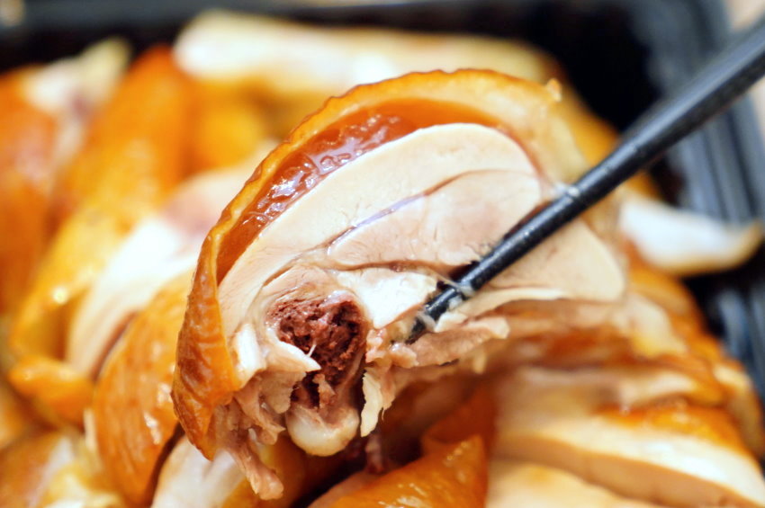 ▼有雞肉凍的肉塊既能吃到柔軟有嚼感的肉質,搭配Q滑的雞肉凍、軟Q的外皮,整個層次多元,好吃!
