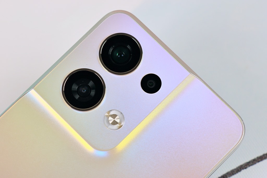 Reno8 Pro 主鏡頭為三鏡頭配置,分別是 5000 萬畫素 f/1.8 大光圈主鏡頭(Sony IMX766 感光元件)搭配上 800 萬畫素 f/2.2 超廣角鏡頭以及 200 萬畫素 f/2.4 微距鏡頭,等於可以透過不同焦段變化拍出創意的影像。