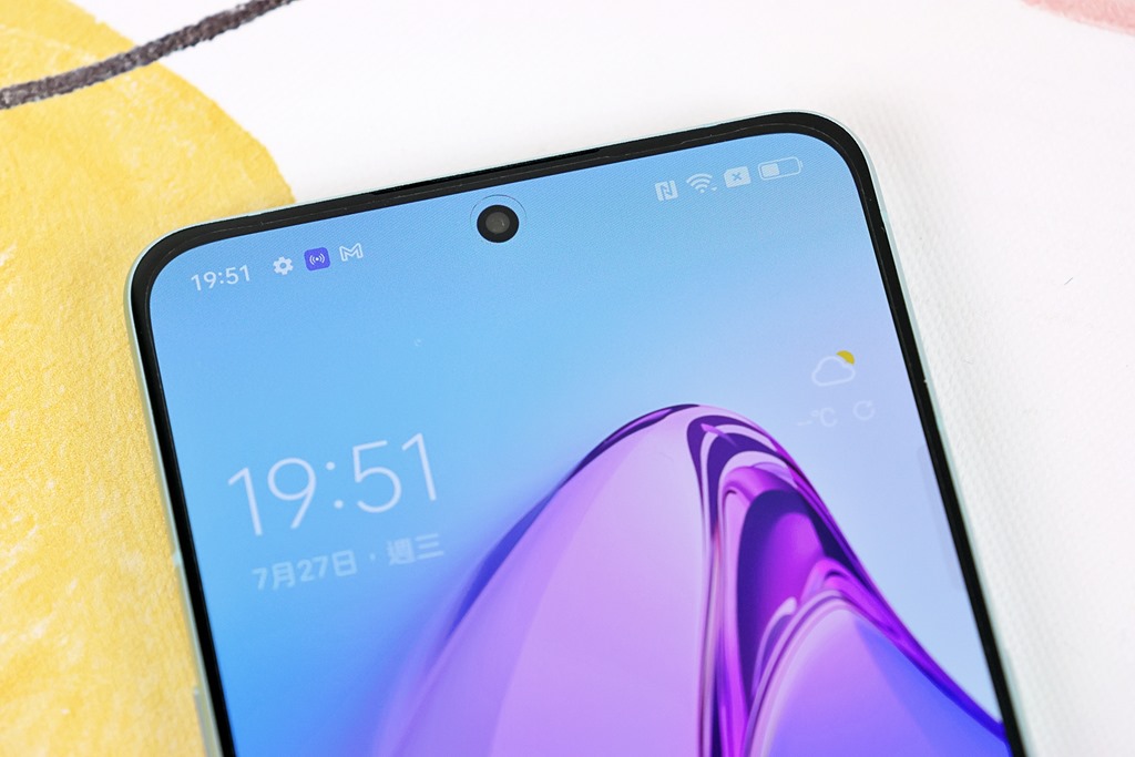 前鏡頭採用挖孔設計,放入 3200 萬畫素自拍鏡頭。