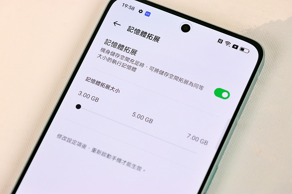 另外,Reno8 Pro 內建記憶體擴展功能,除了原有內建 12GB 記憶體之外,如果內建儲存空間充足時,可以將儲存空間拓展為執行記憶體,並提供 3GB、5GB、7GB 三種選項,記得拓展完之後要重新開機才能生效。