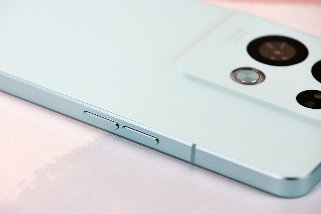 機身邊框採用平整設計,音量鍵也是相同的設計風格,看起來質感非常好,按壓的回饋感也很不錯。