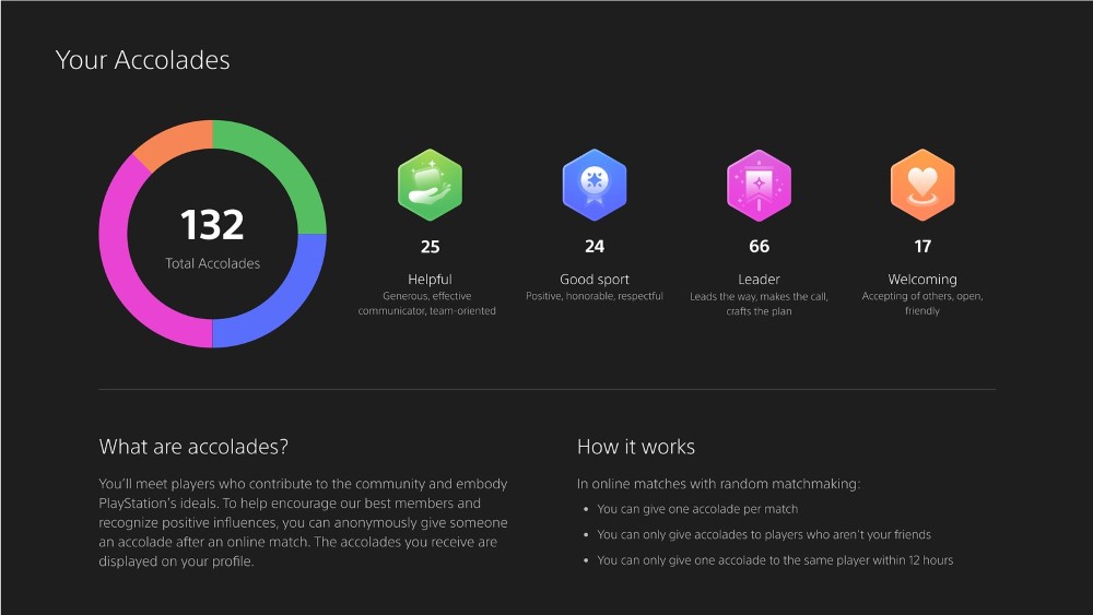 索尼互動娛樂(SIE)計畫年底將淘汰 PlayStation 5 的讚譽功能(Accolades)。這項功能允許用戶在完成多人遊玩對戰後,向良好行為的玩家傳送讚譽以表達正面評價。根據索尼的公告,由於讚譽系統「太少人使用」,因此決定移除這項功能。