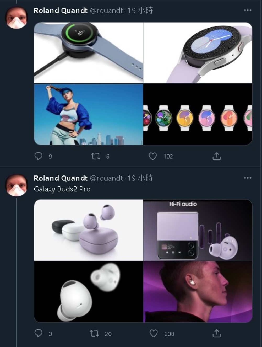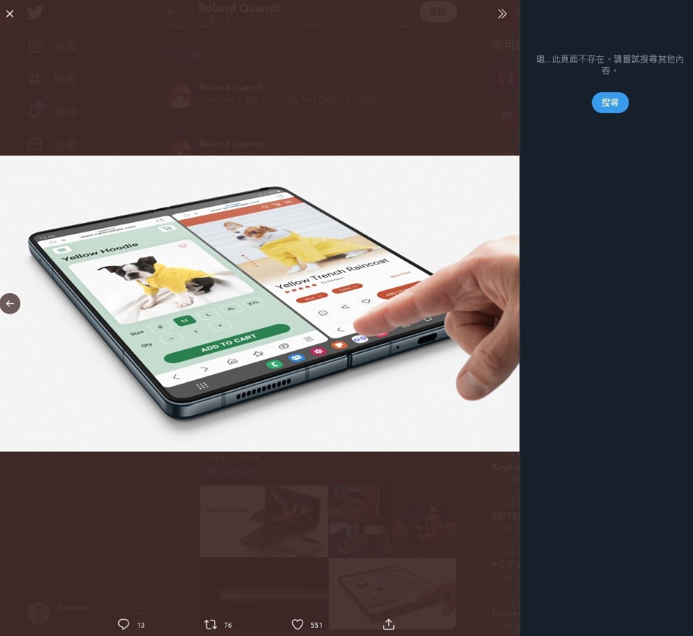 d 4、Galaxy Z Flip 4、智慧手錶 Galaxy Watch 5、藍牙耳機 Galaxy Buds2 Pro 重點功能。圖片目前因「版權因素」已遭推特移除。