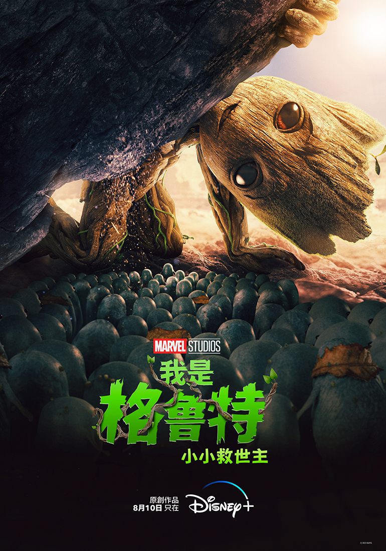 8 月 10 日,漫威影業夏季新作《我是格魯特》將於今日正式上線,由受歡迎的小樹寶寶格魯特主演、《玩命關頭》系列電影男星馮迪索獻聲配音,五部原創短片將為觀眾帶來可愛又古怪全新角色。另外,迪士尼同步釋出單集視覺海報。