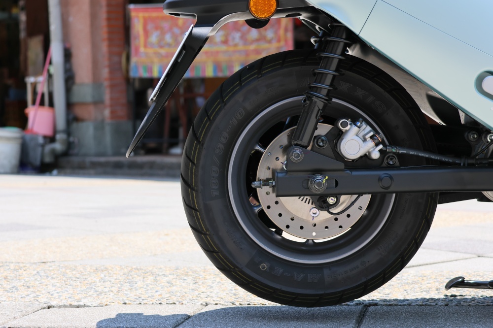 車身配備的是 SBS 前後雙碟煞,遇到緊急情況時煞車也夠力,由於 Gogoro Delight 導入了新的 SSmartcore 智慧核心,未來也可以選配定速巡航或是 TCS 循跡防滑系統,行車時可以多一份安全。