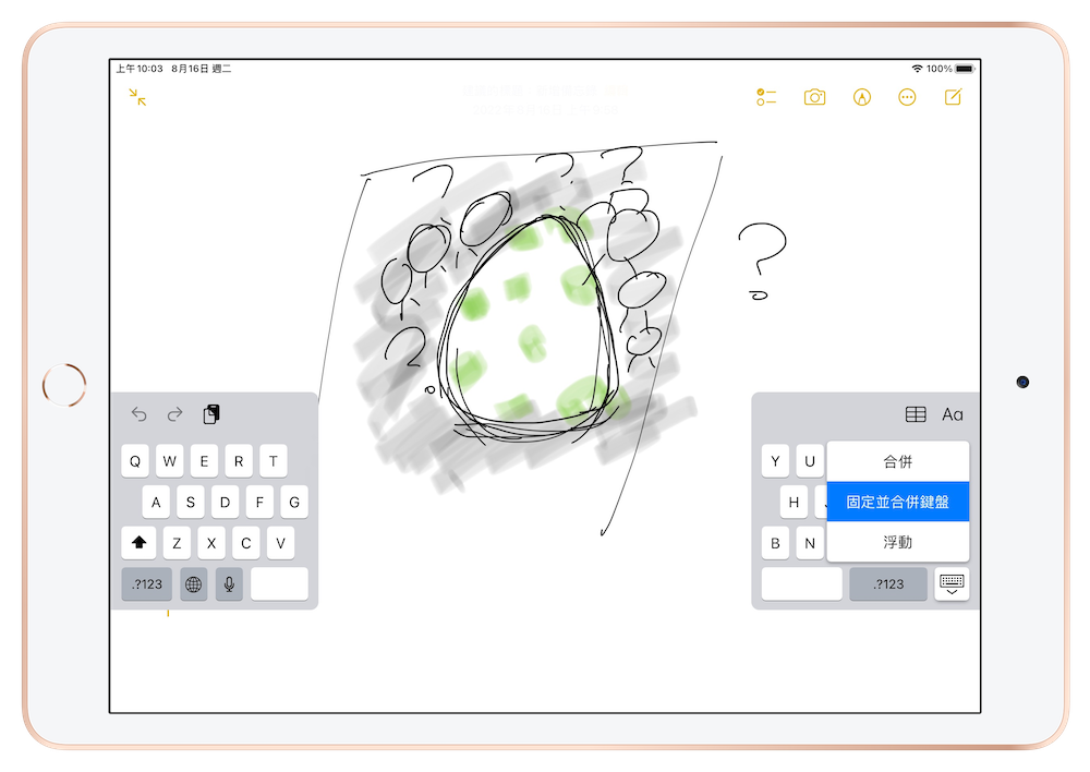 [教學] 如何放大縮小、分開合併 iPad 鍵盤?